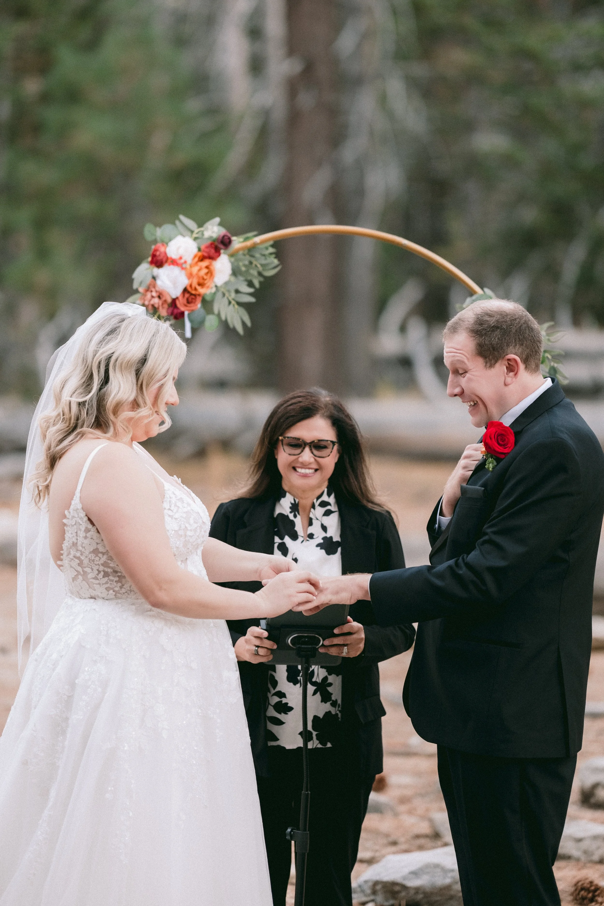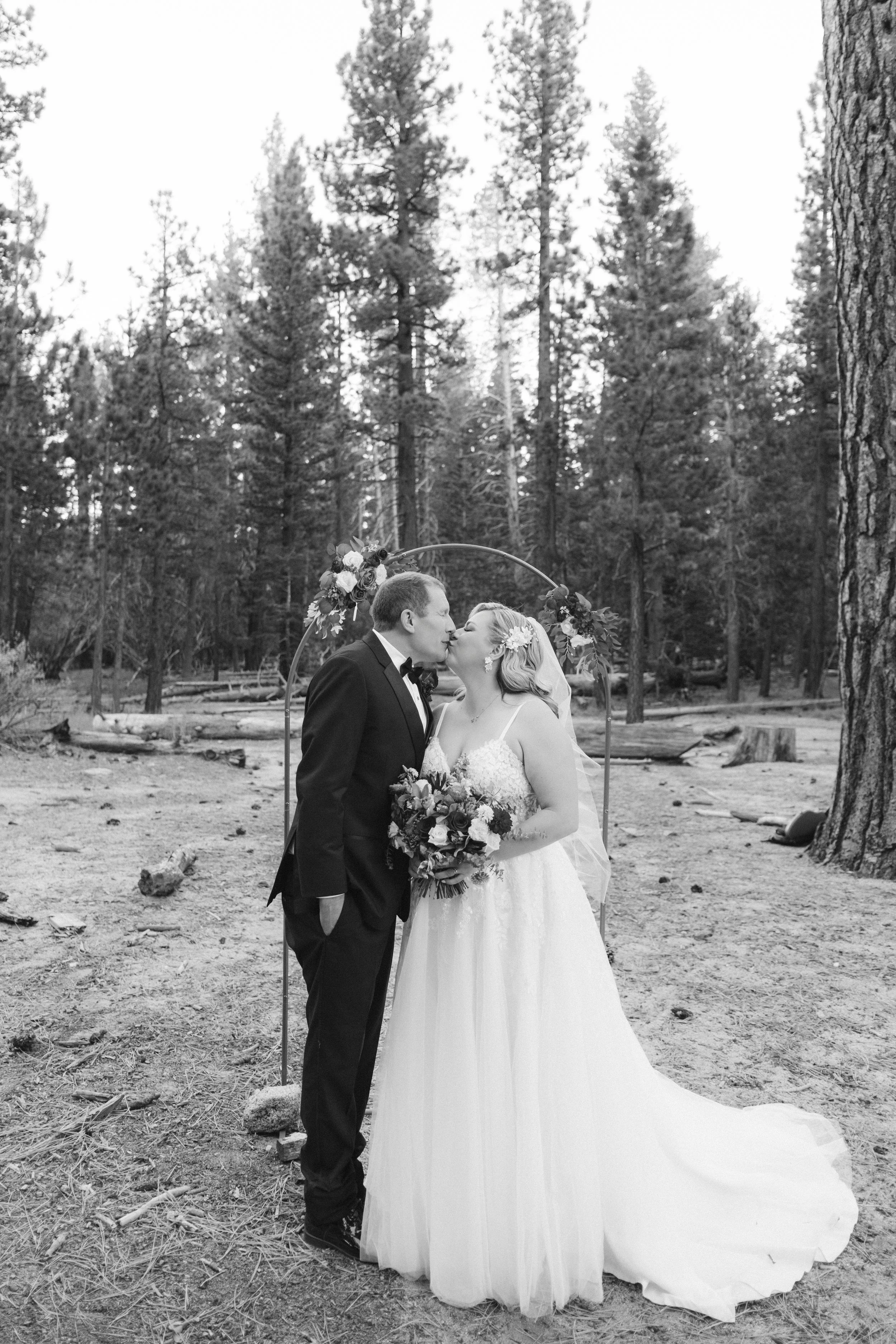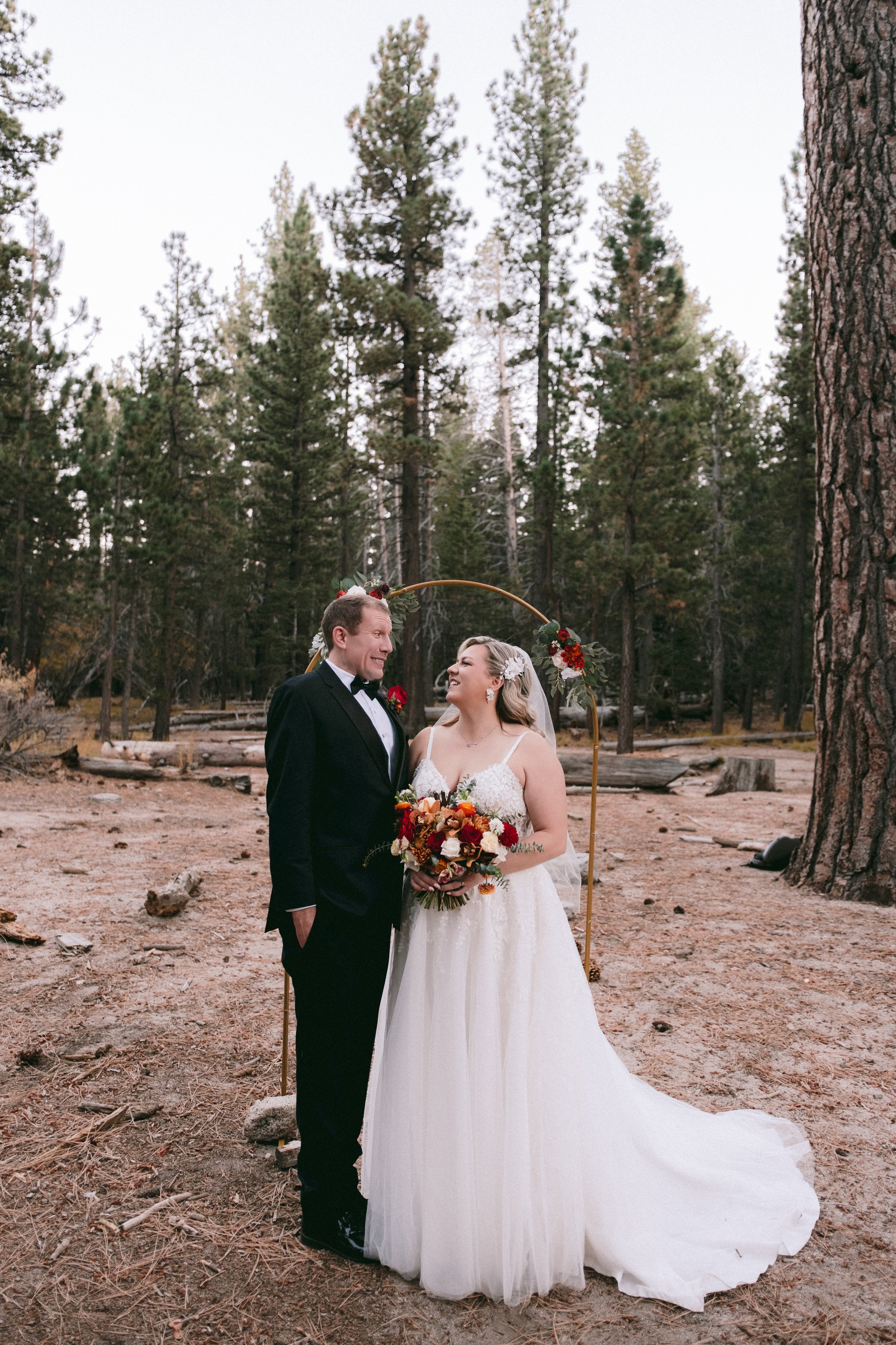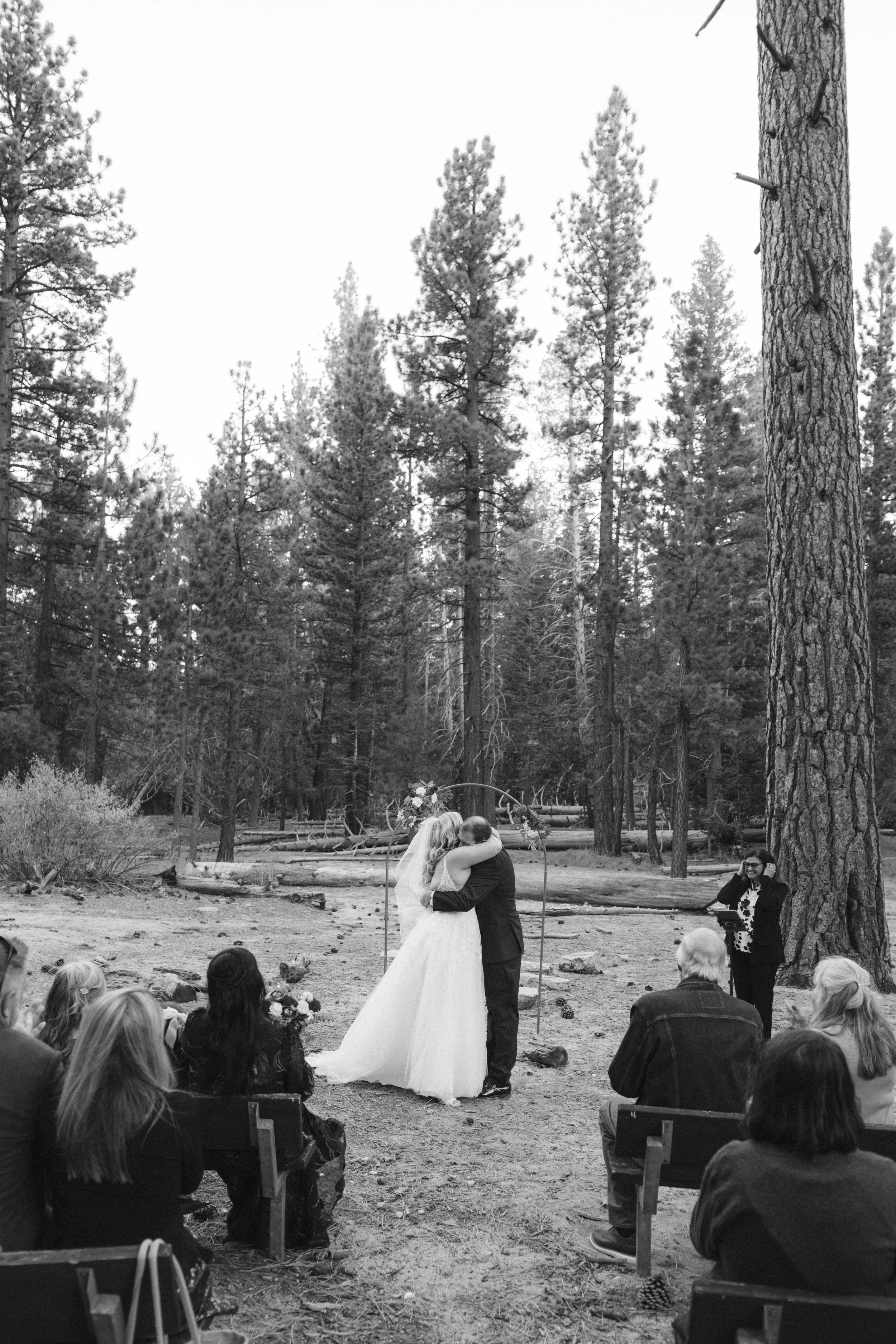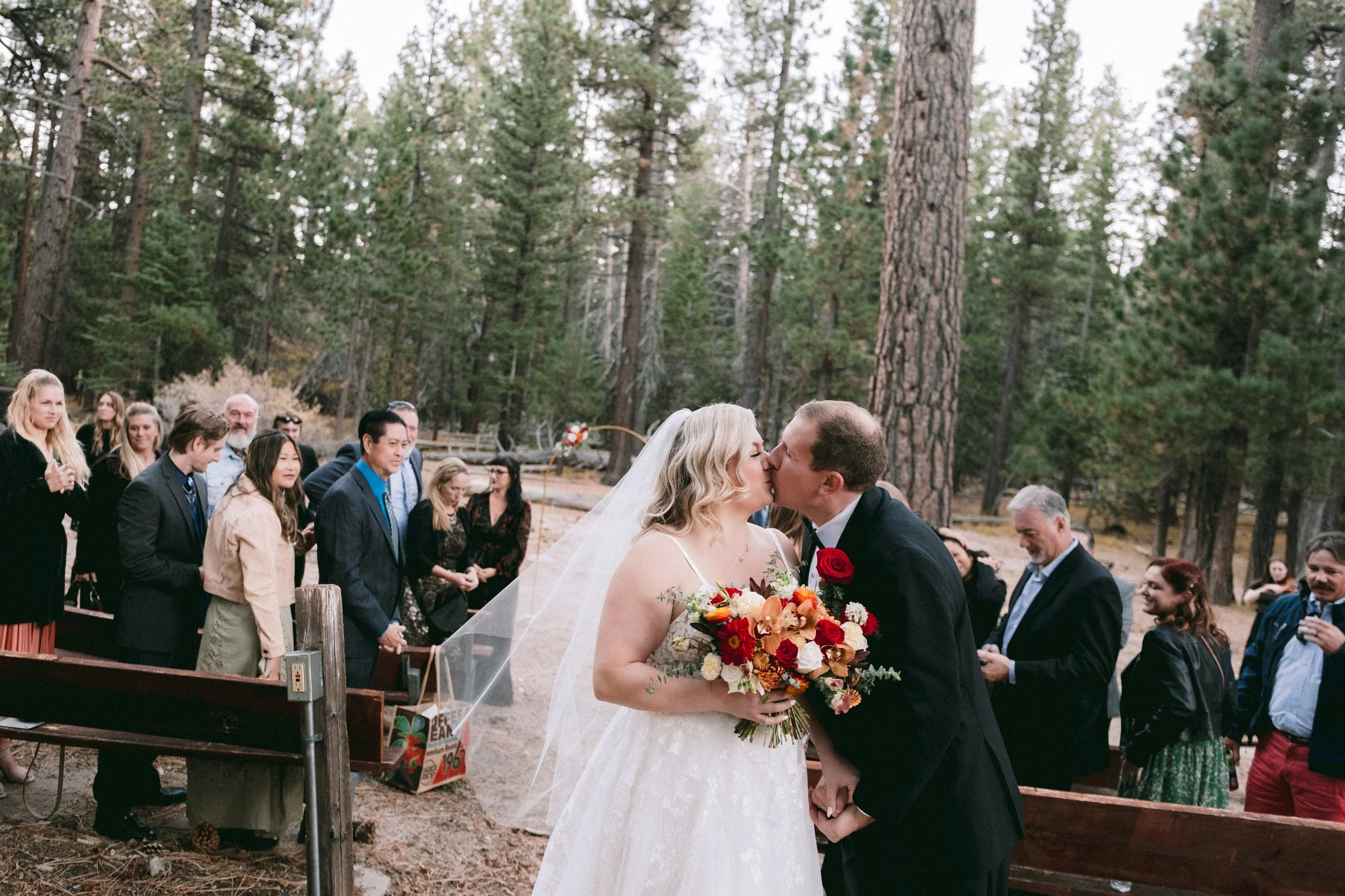 A warm and intimate wedding day in Palm Springs, surrounded by soft morning light and tall pines.